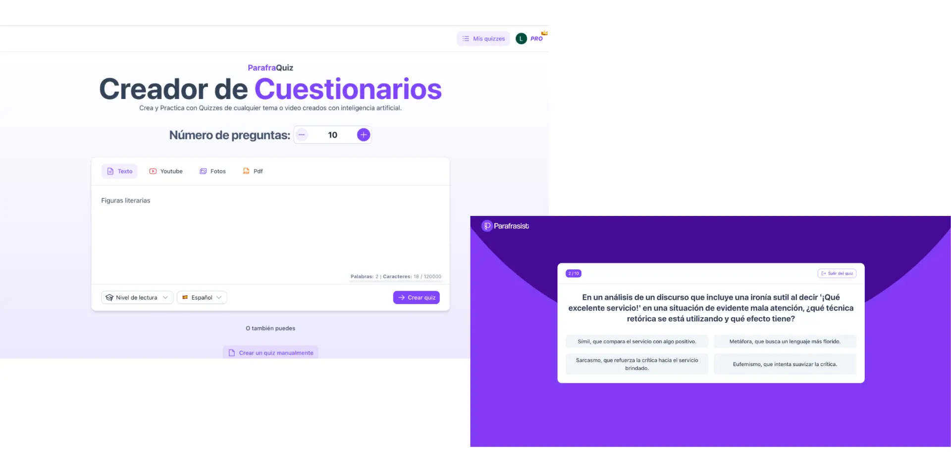 Si aún te quedan algunas dudas acerca de éstas o consideras que es difícil memorizar su significado o lo que aportan a una oración, ¡puedes practicar online con ParafraQuiz! Sólo ingresa el tema y podrás responder preguntas e identificar frases de figuras literarias.
