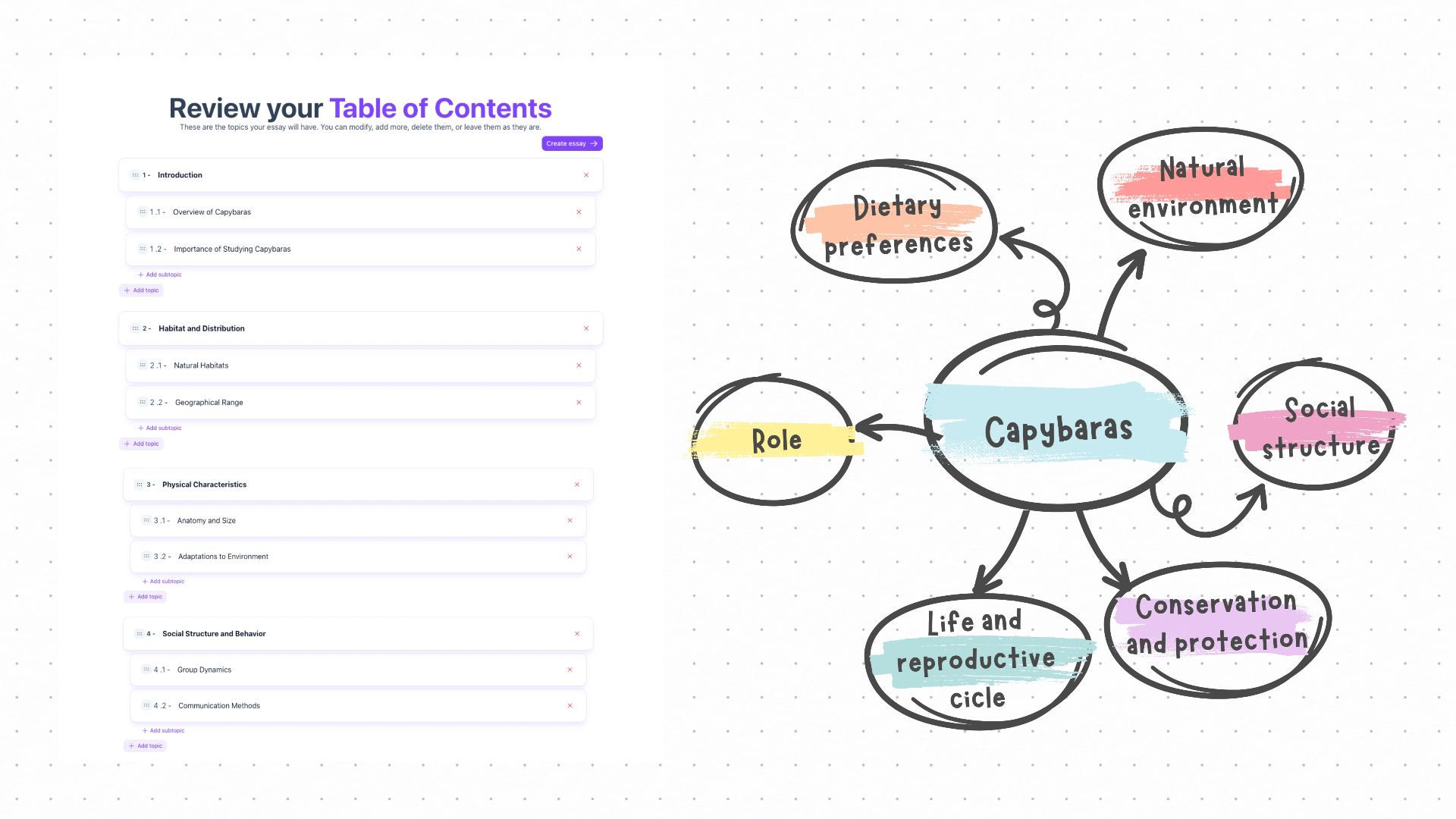 There is no limit to the number of branches, meaning you can keep adding ideas, illustrations, examples, etc. Just remember that all ideas must be connected to each other. We suggest you try to use Ideas and try to summarize all the information so that you do not end up with an enormous map. Parafrasist also has a text summarizer that additionally gives you the most important points of the text.