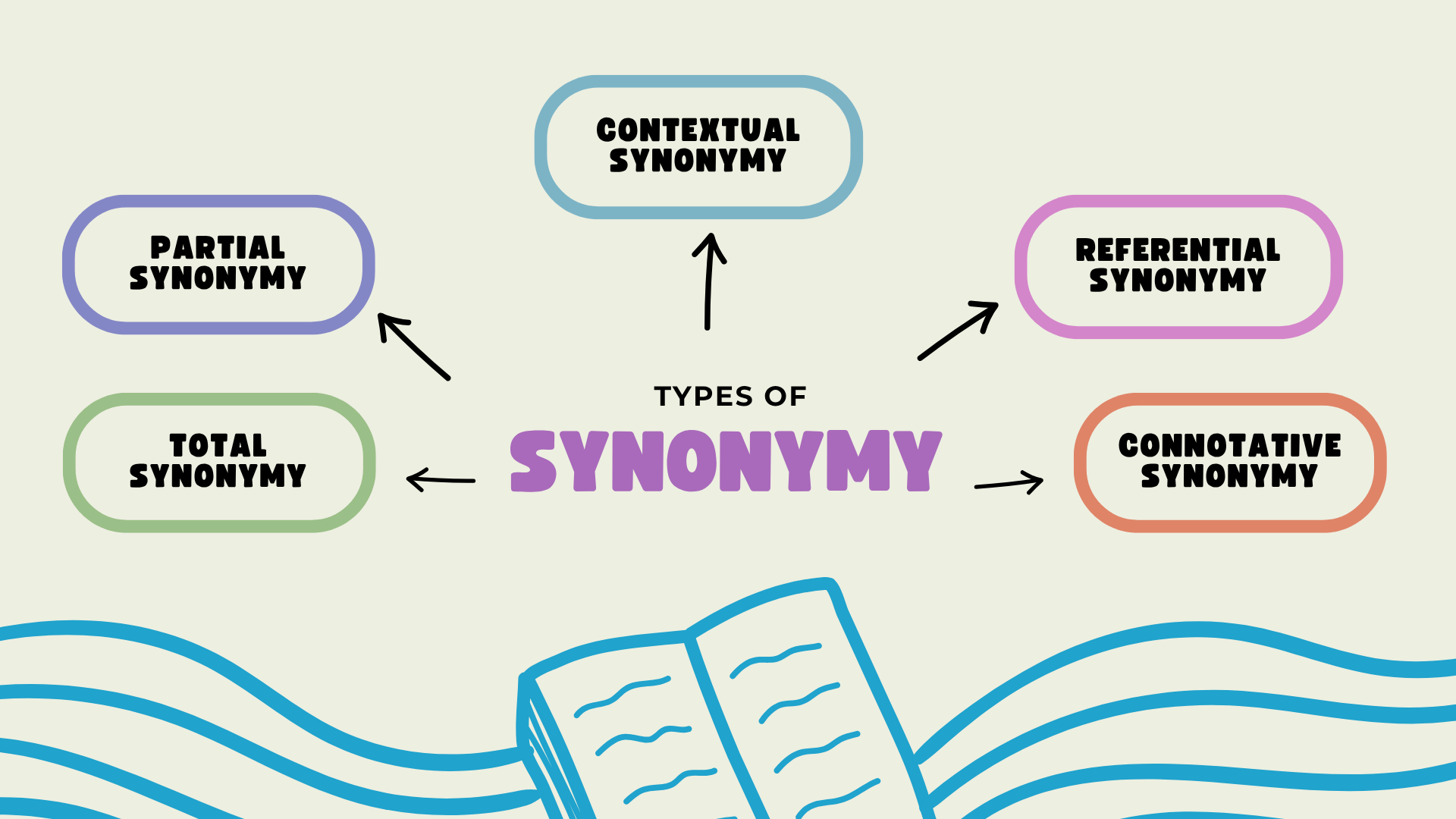Synonymy is the relationship between two or more words that have similar meanings. However, not all synonyms can be used interchangeably in every situation. That’s why synonymy is classified into different types: